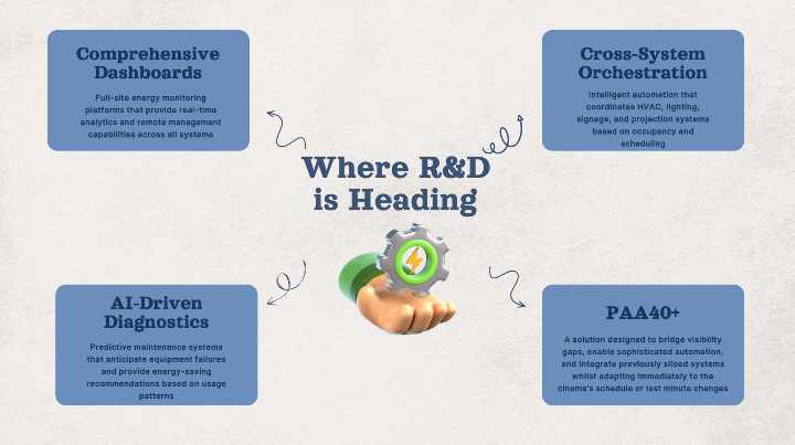 Cross-System Orchestration: We're moving towards true orchestration where all equipment can work together, automatically adapting and aligning to showtimes and occupancy, turning on only what's needed when it's needed.
